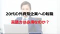 [9ポイント] 30代、外資系企業への転職するためのスキルや経験